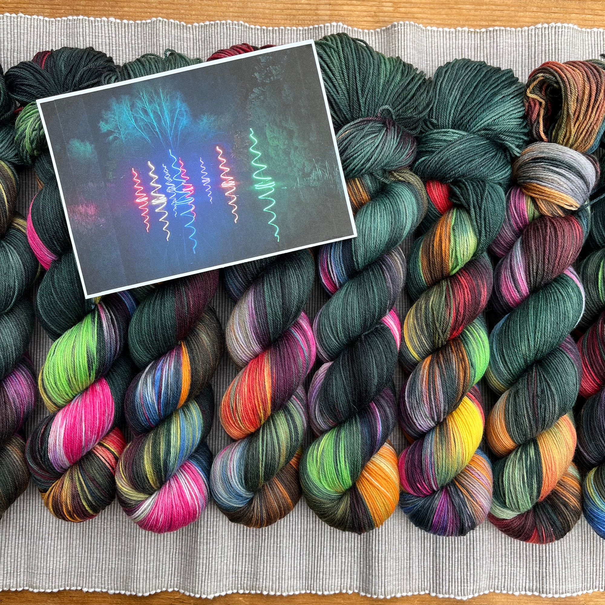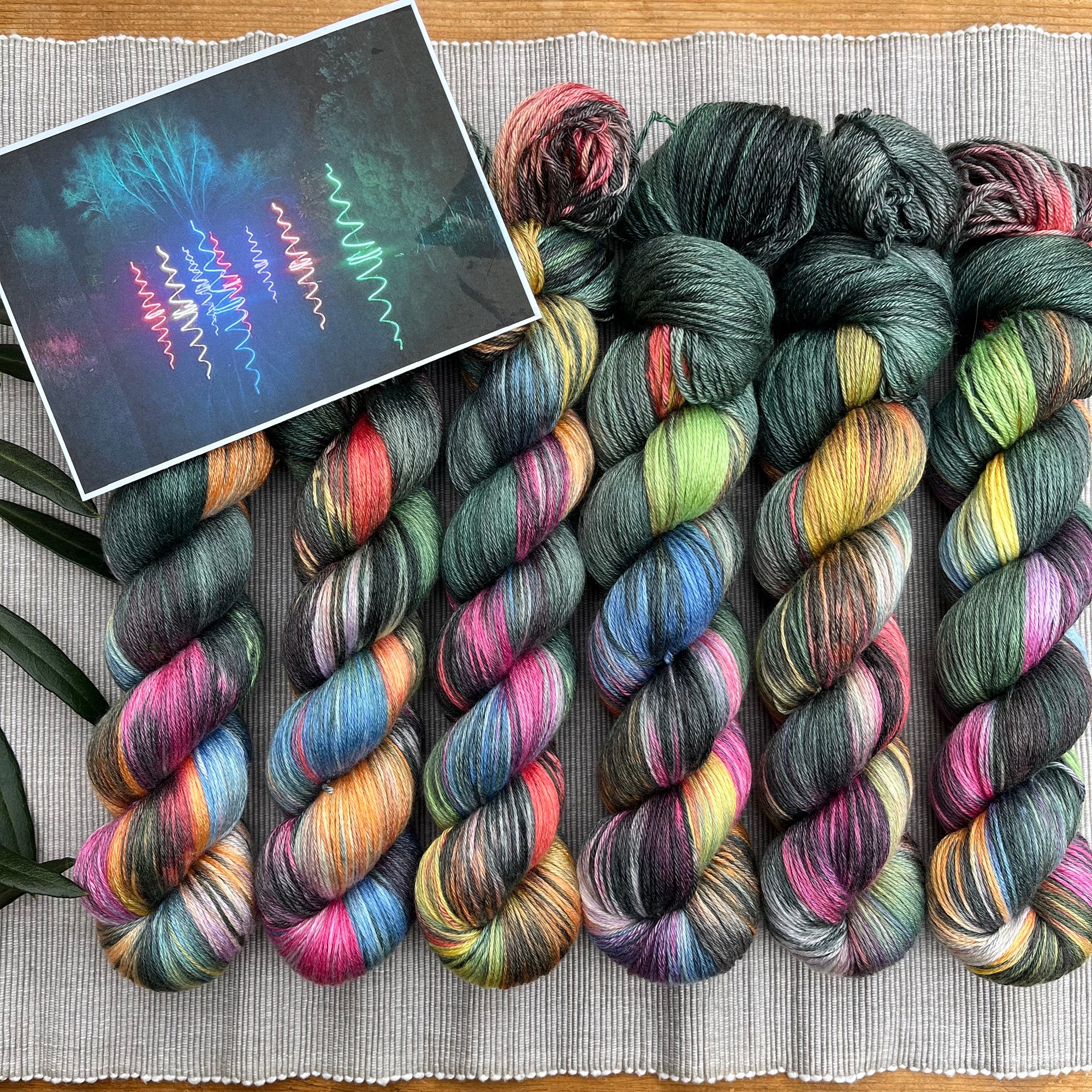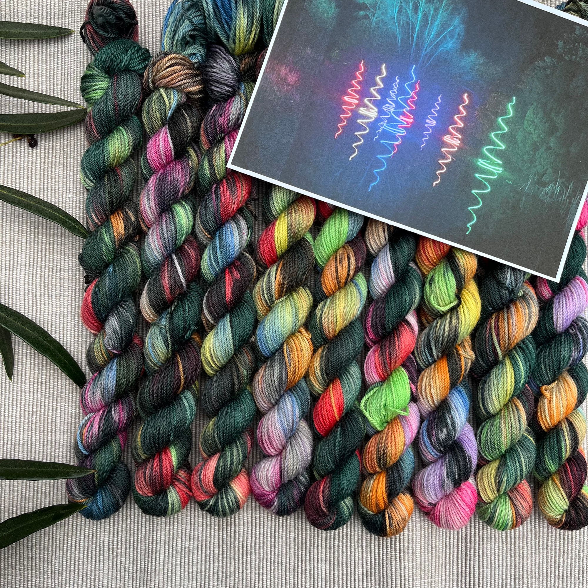 Scroll Down to see the colourways dyed for 2025. Your Happy Mail package will include a postcard of the image that inspired the colourway and a themed stitch marker too!
